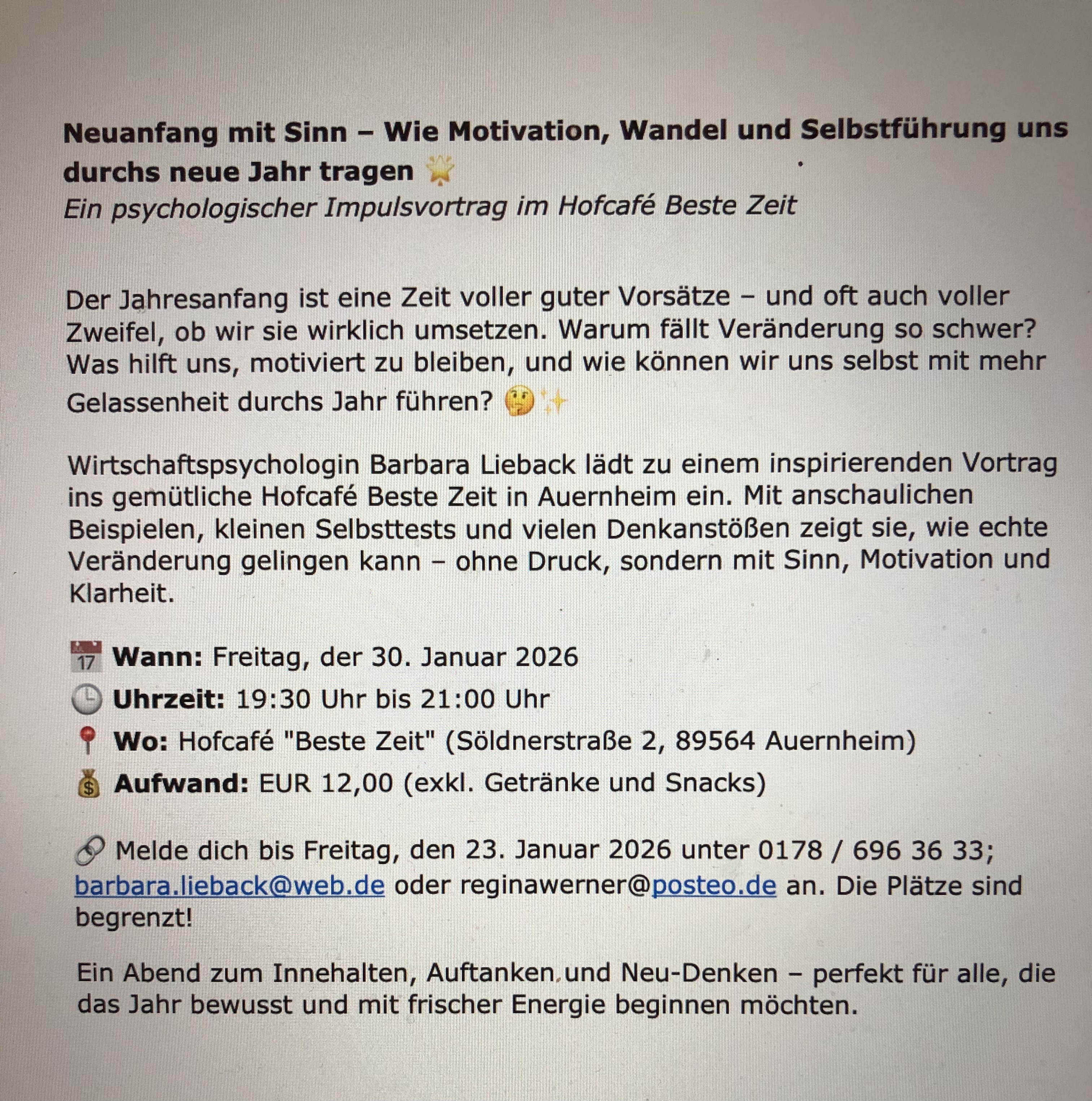 Der Abend bietet inspirierende Impulse und alltagstaugliche Ansätze, die dabei unterstützen, aus dem Gefühl der Ohnmacht in innere Klarheit und Handlungsfähigkeit zu kommen.