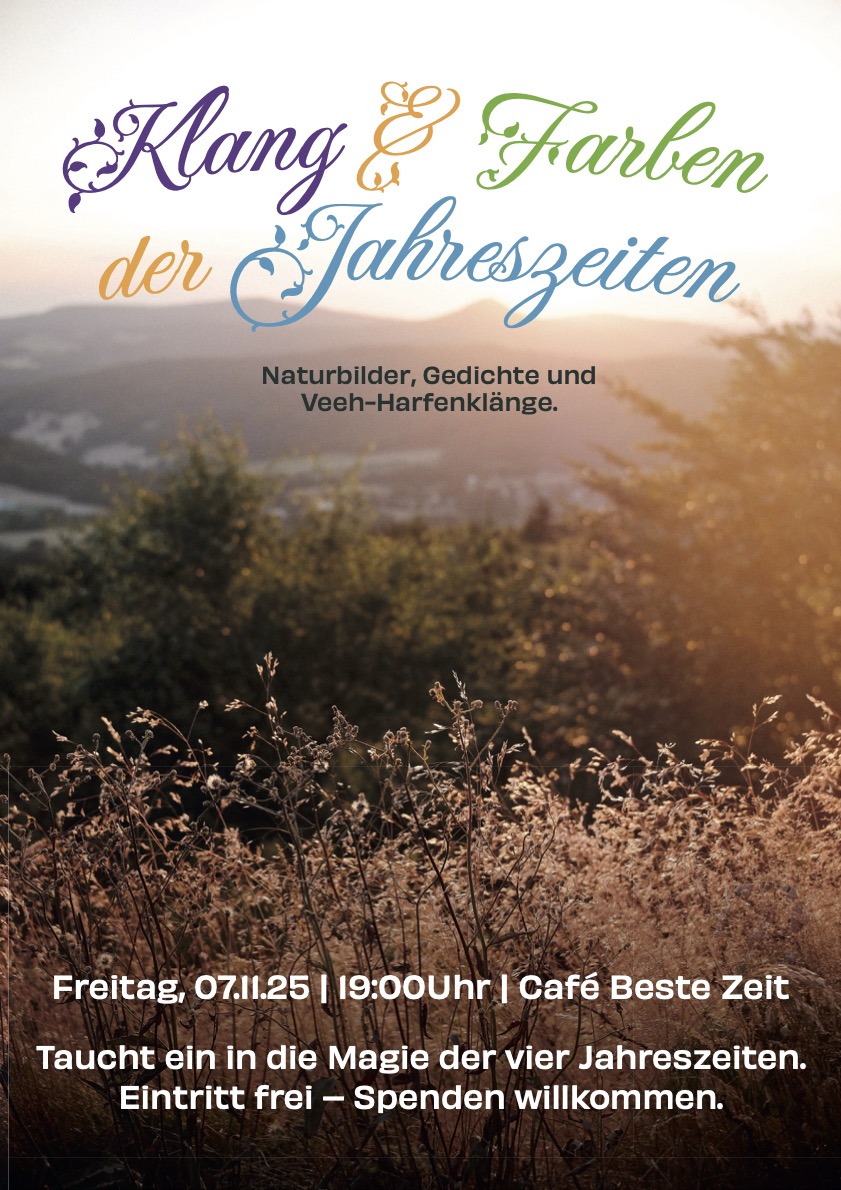 Herzlich Willkommen zu dieser Veranstaltung. Rosi Bergmann wird diesen Abend für uns gestalten. Wir können uns auf einen besinnlichen, schönen Abend voller Poesie einstellen, der das Herz wärmt und die Dankbarkeit für das Leben nährt.